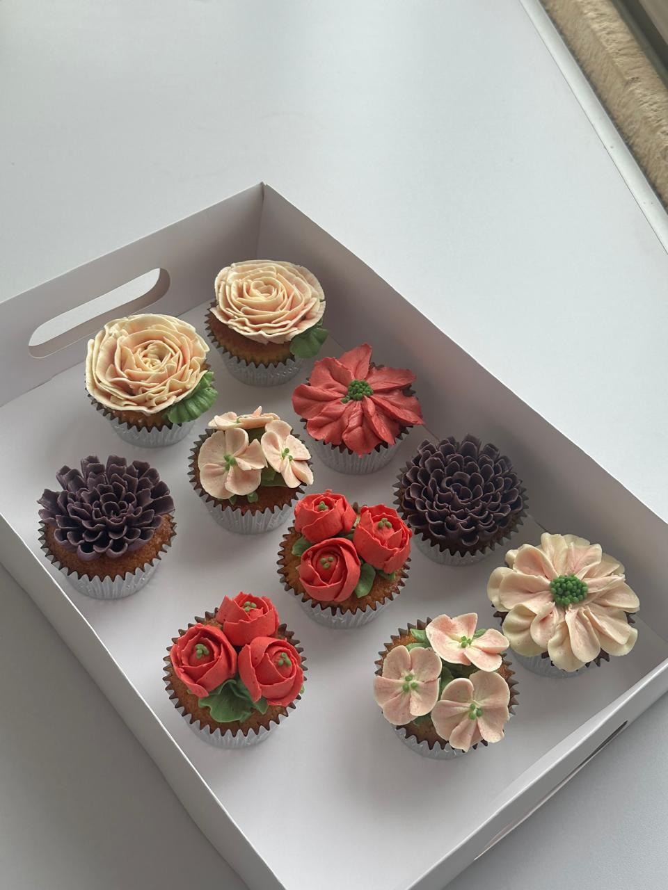 Decoración de buttercream con flores hechas a mano; bizcocho vainilla o chocolate; con o sin relleno (manjar, mermelada o Nutella). Personalizables. Valores según relleno y decoración.